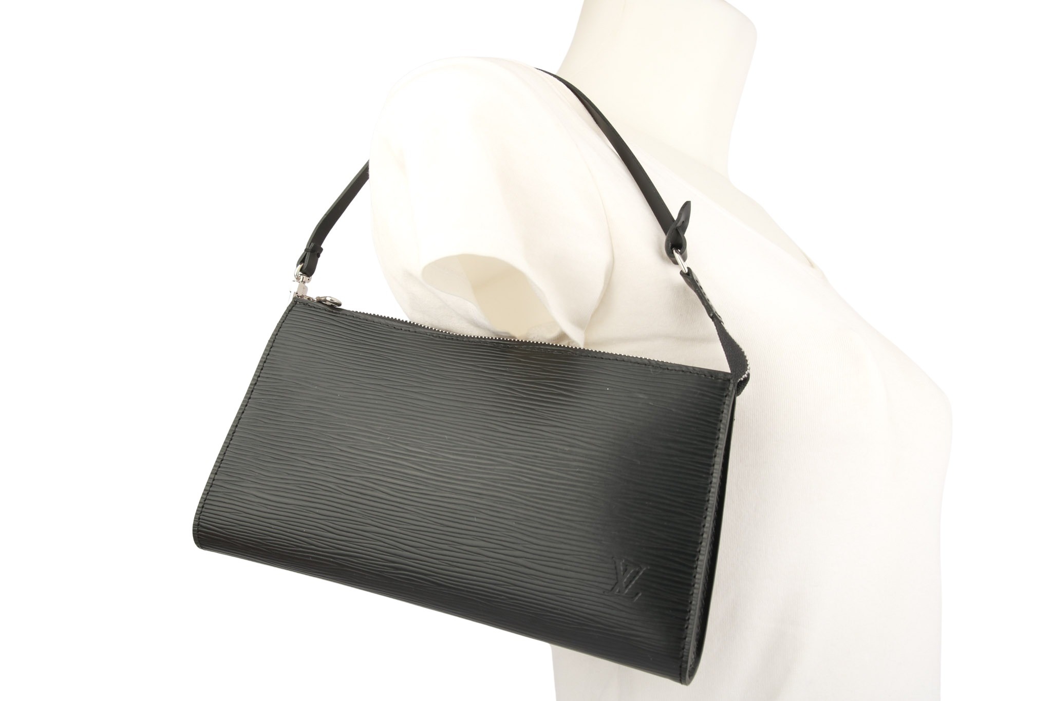 Discover the Louis Vuitton Pochette in black Epi leather – an elegant and versatile bag that embodies timeless sophistication. The signature Epi leather gives the Pochette a unique texture and durability, while the subtle Louis Vuitton embossing adds a touch of luxury. With its sleek design and detachable shoulder strap, it offers versatile carrying options, whether as a clutch, shoulder bag, or crossbody bag. Perfect for everyday wear or special occasions, the Louis Vuitton Pochette in Epi leather is a must-have for style-conscious women.