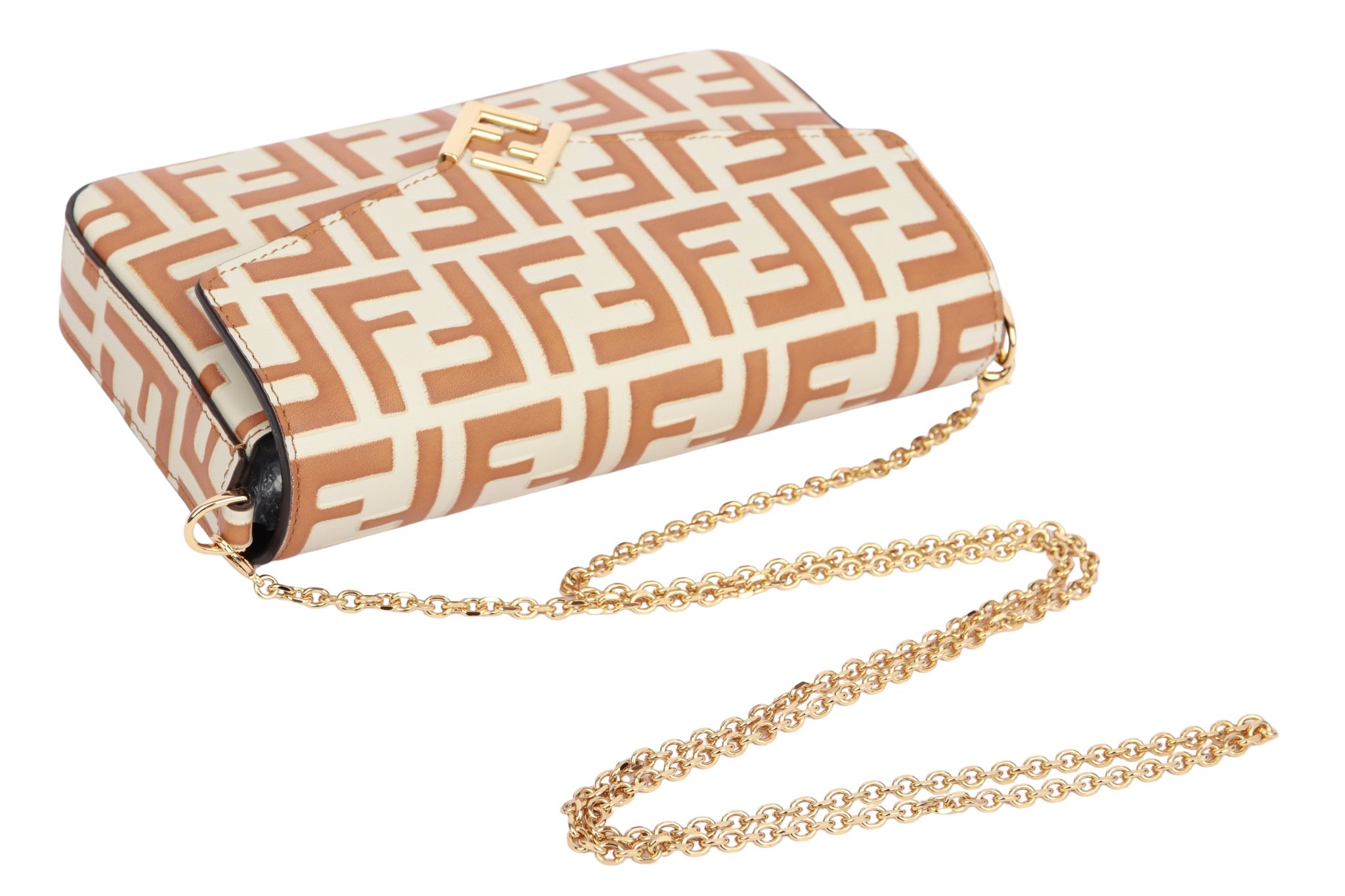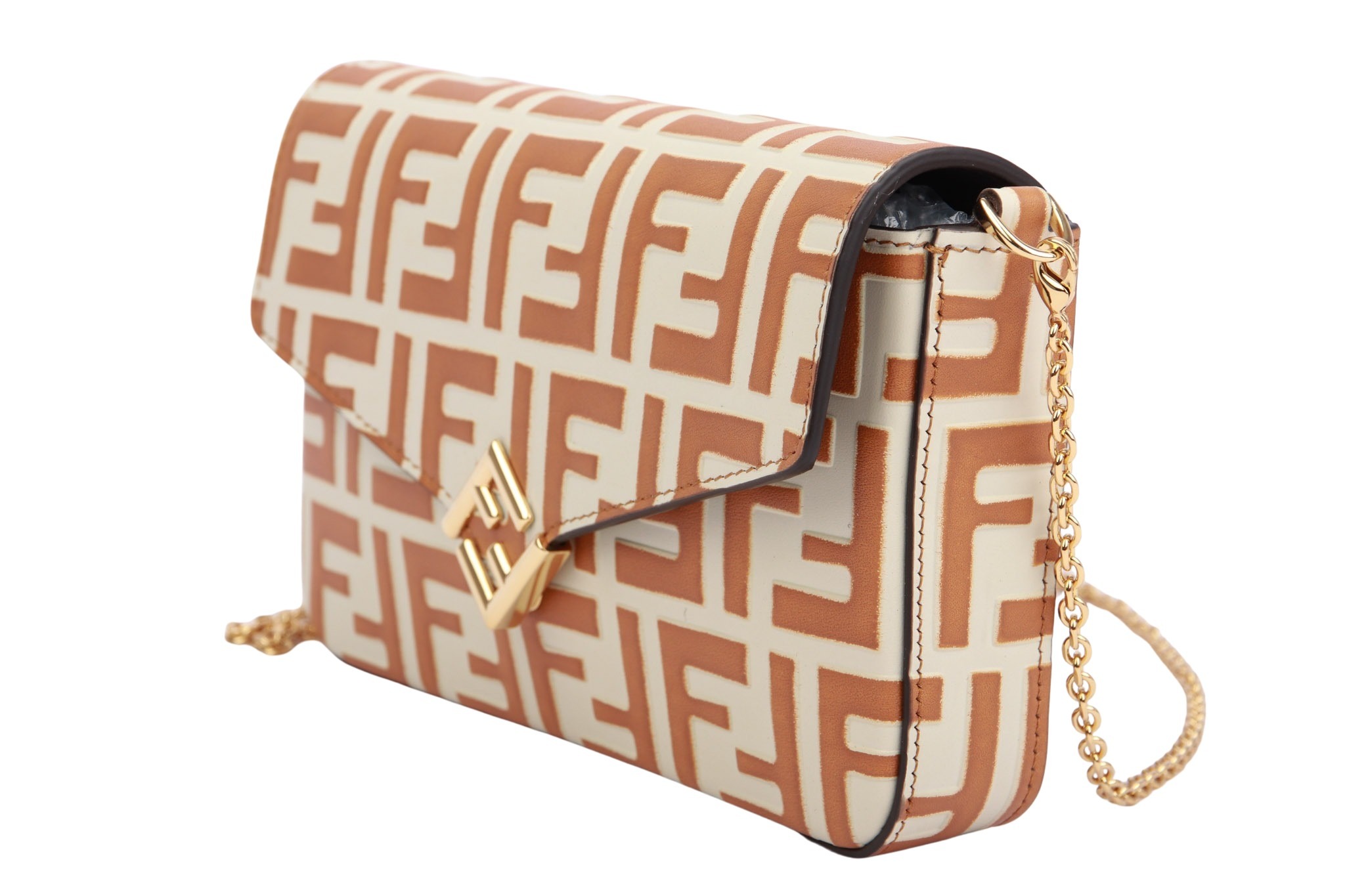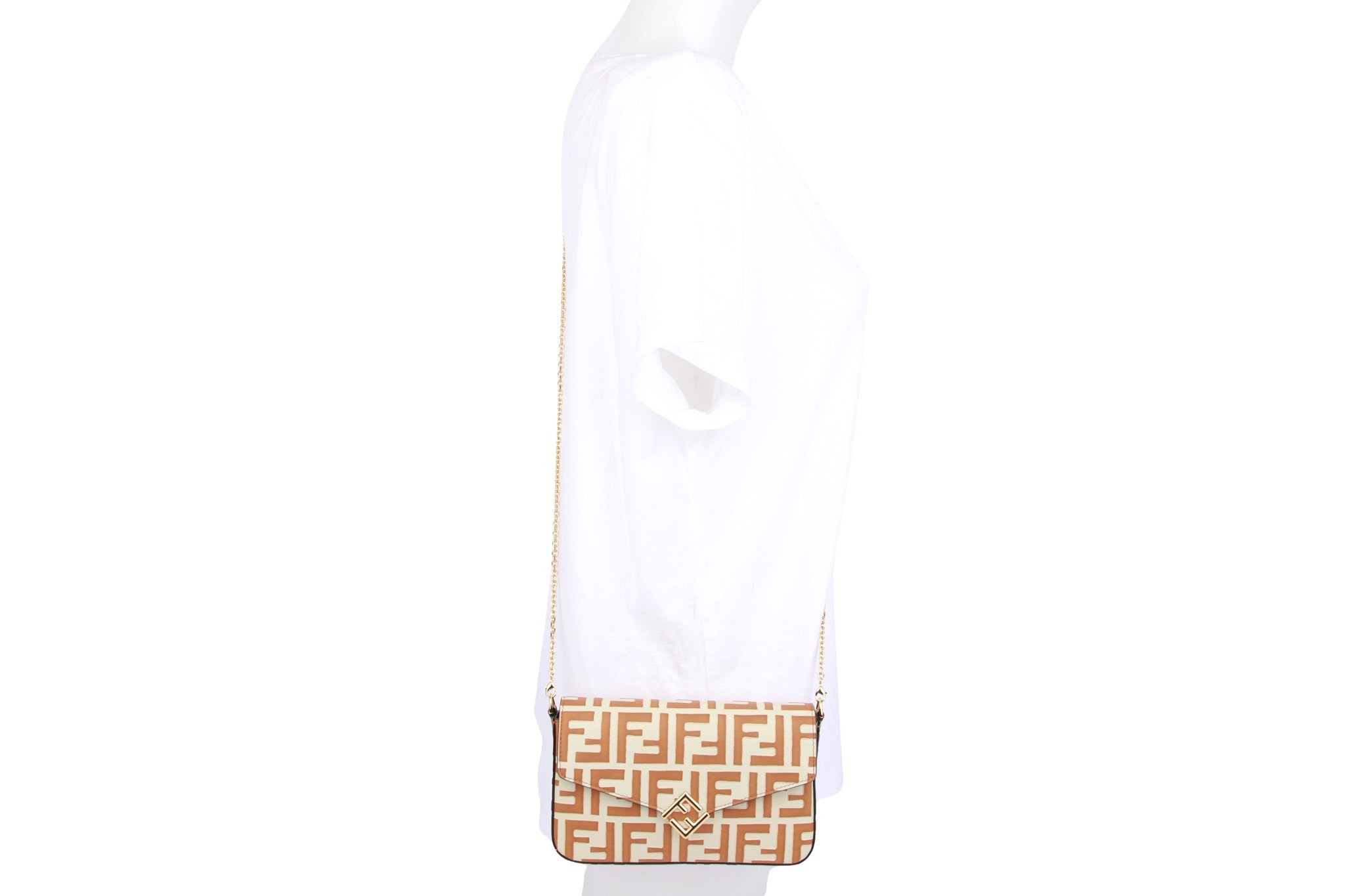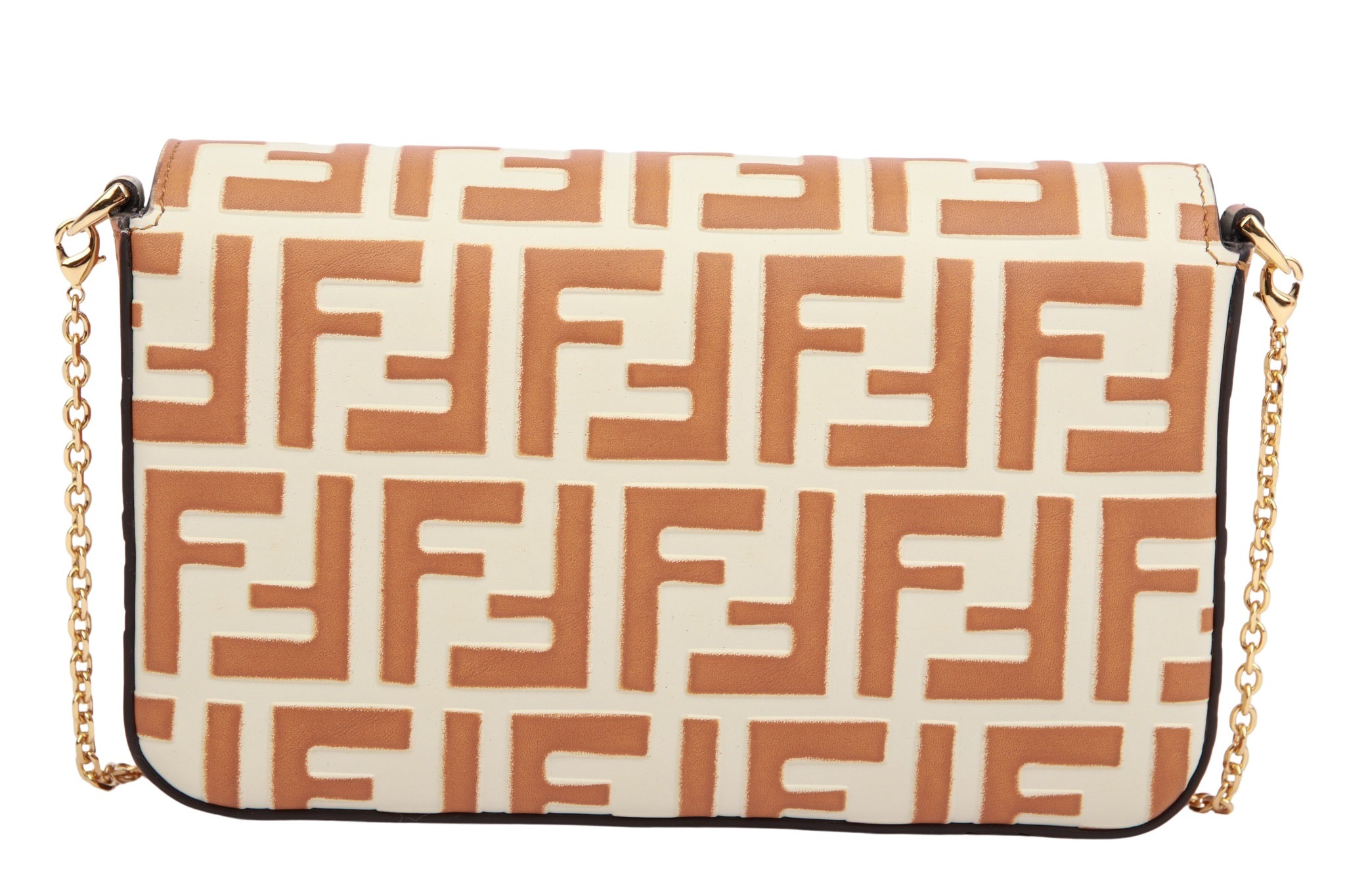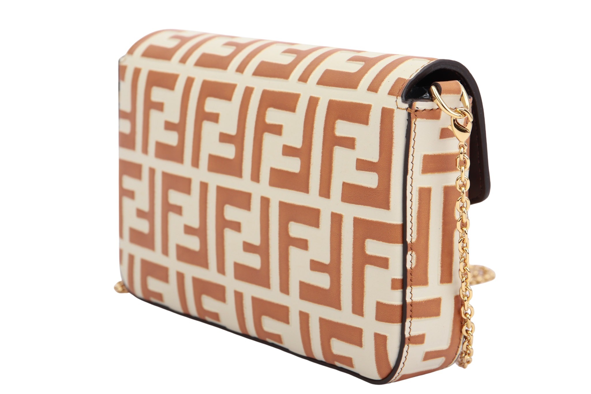 Compact FF Diamonds crossbody bag/wallet from Fendi, crafted from premium leather with the iconic FF Diamonds relief pattern. It features a detachable/adjustable shoulder strap, gold hardware, and a convenient interior compartment for cards and essentials – ideal as a stylish crossbody bag for everyday use or evenings out.