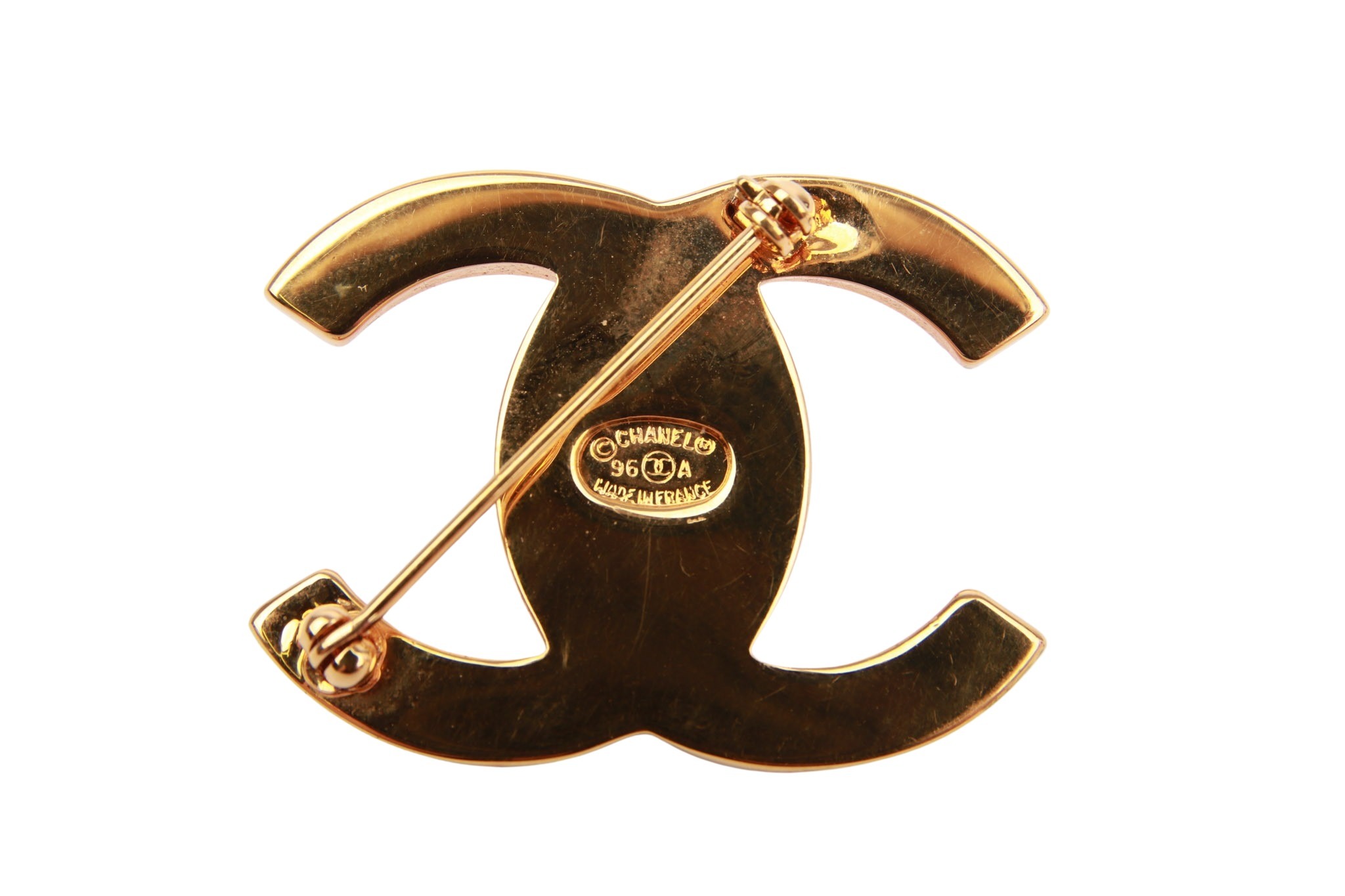 Add a touch of Parisian elegance to your outfit with this striking Chanel brooch in gold. This design symbolizes the unmistakable chic of the French luxury house.