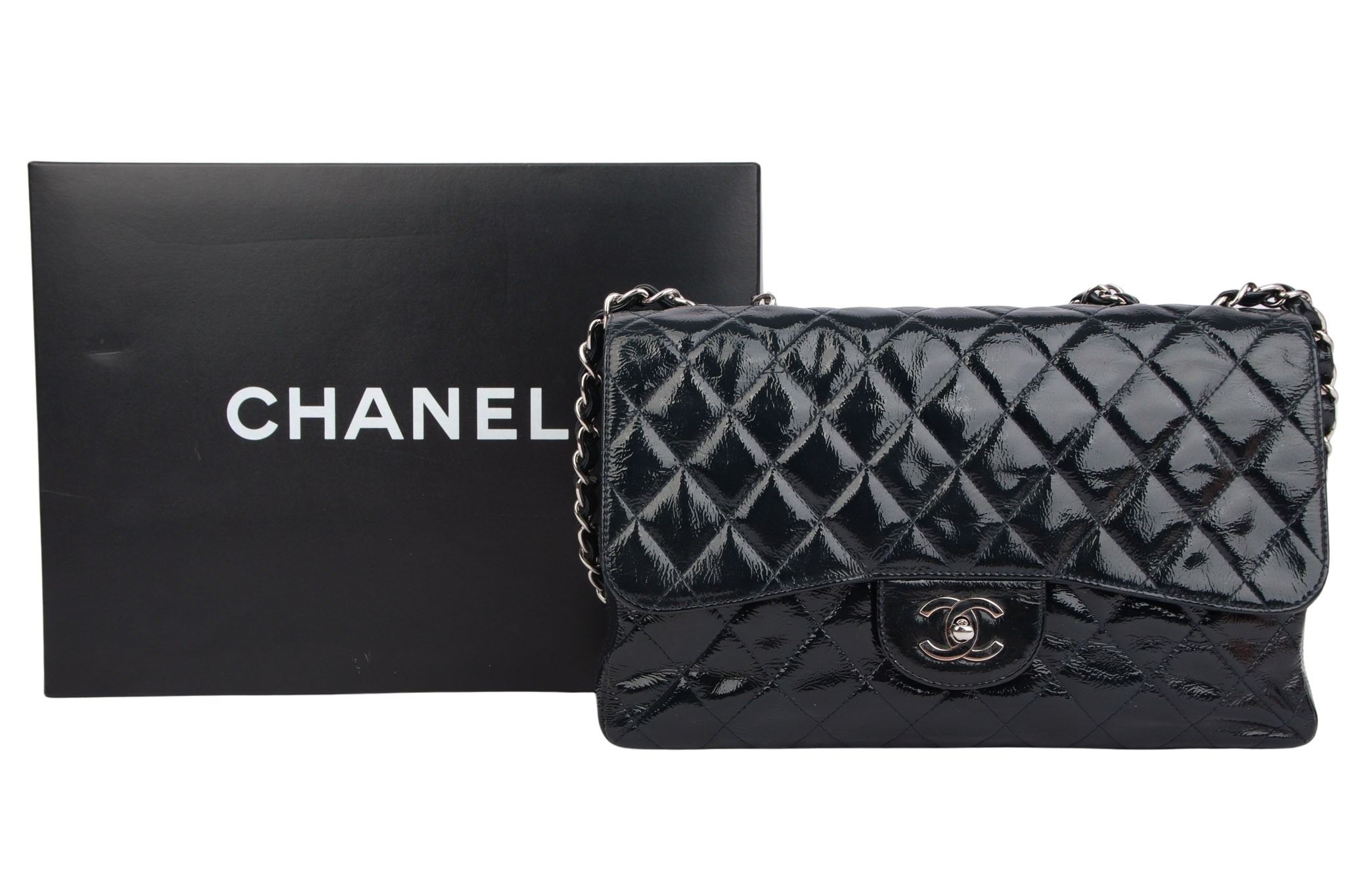 Chanel Jumbo Flap Bag Schwarz Lackleder