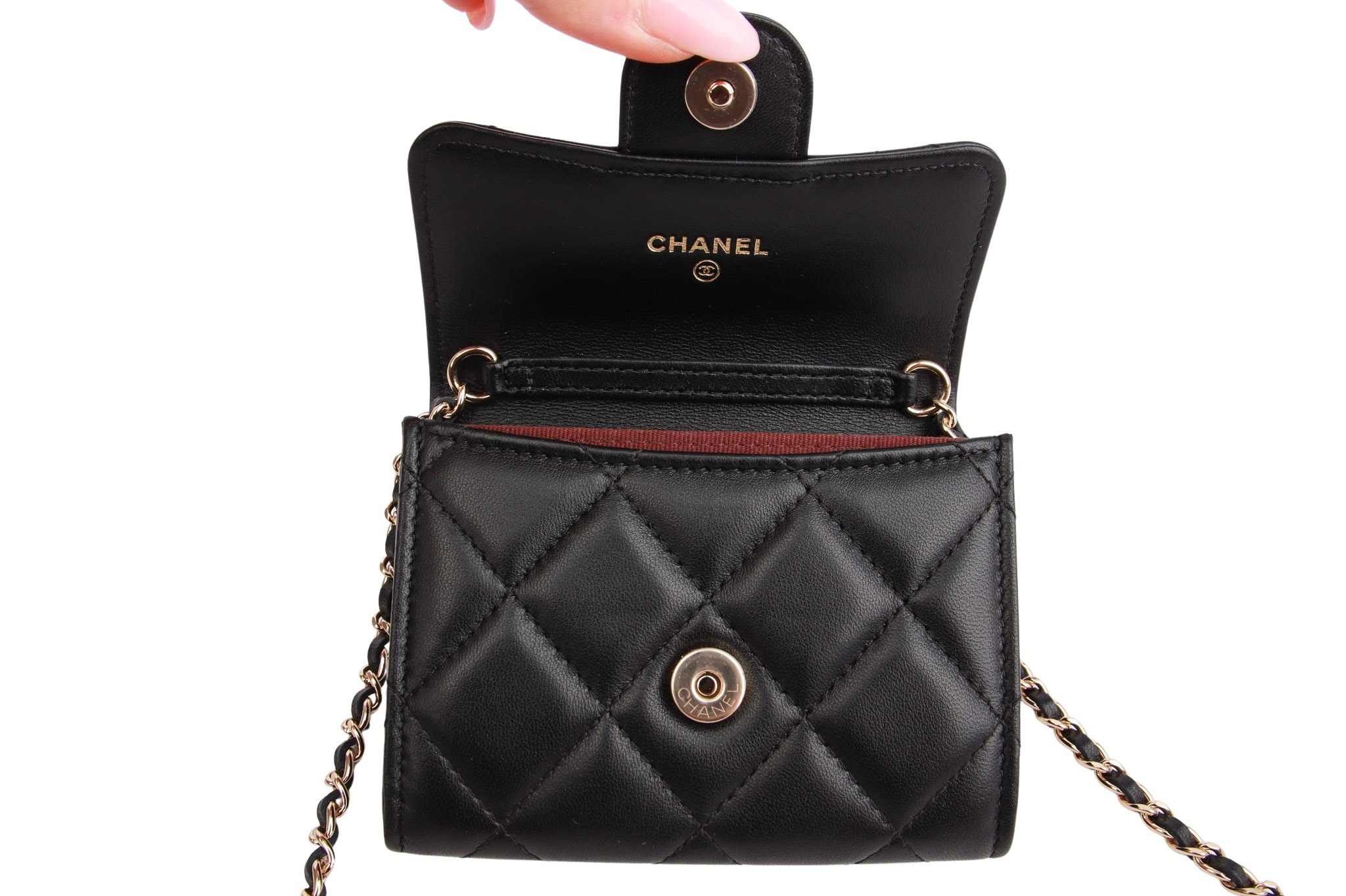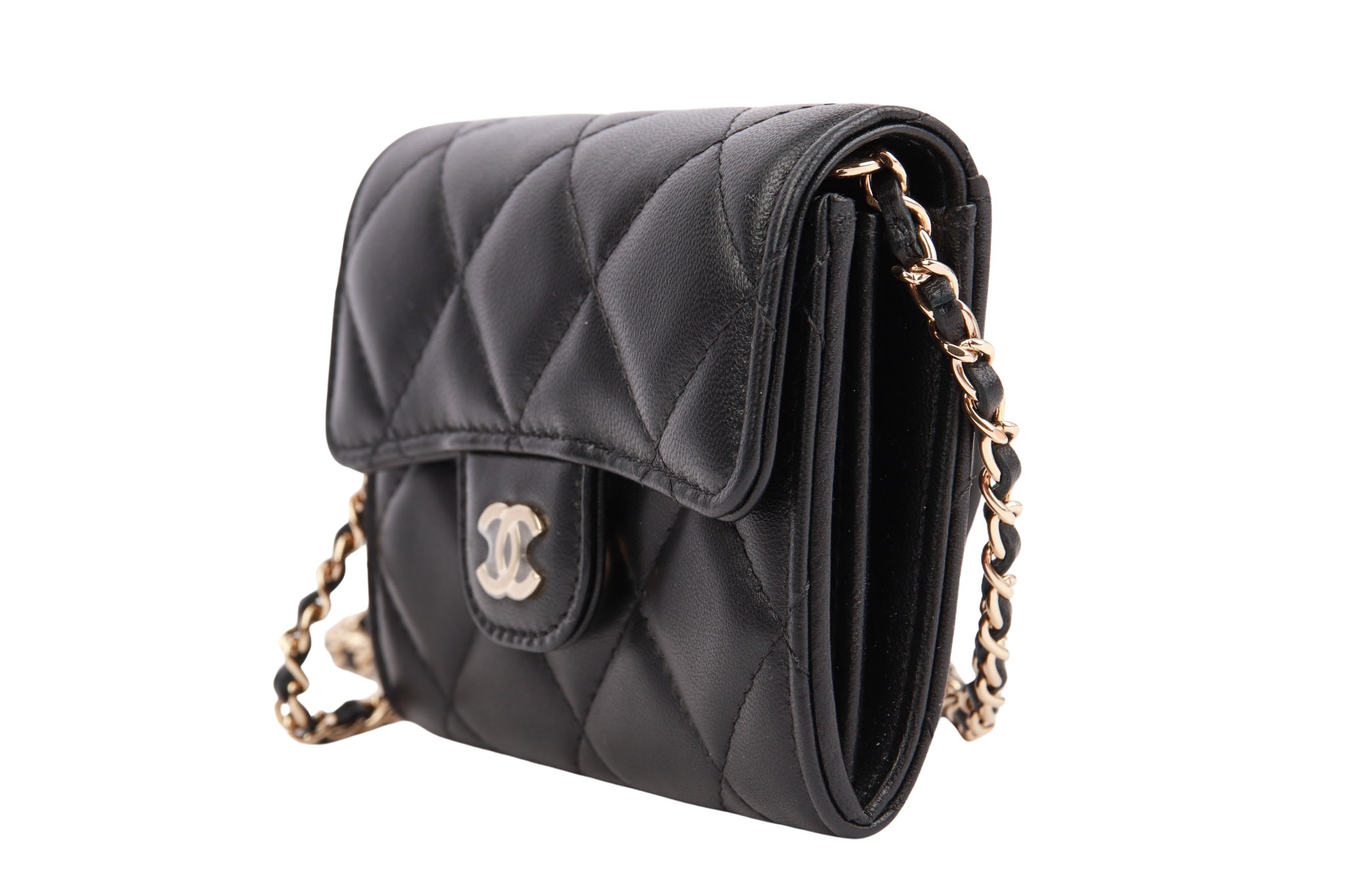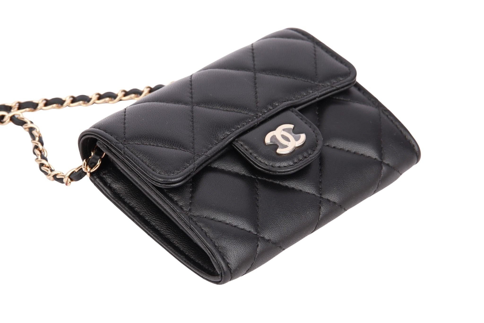 Elegance meets functionality: The Chanel Mini Wallet on Chain is the perfect accessory for those who love luxury and style without sacrificing practicality. Crafted from high-quality, quilted lambskin leather, the Mini Wallet on Chain impresses with its refined feel.