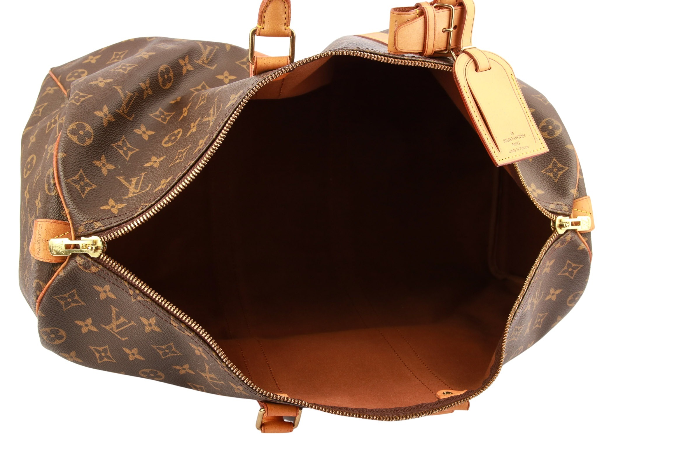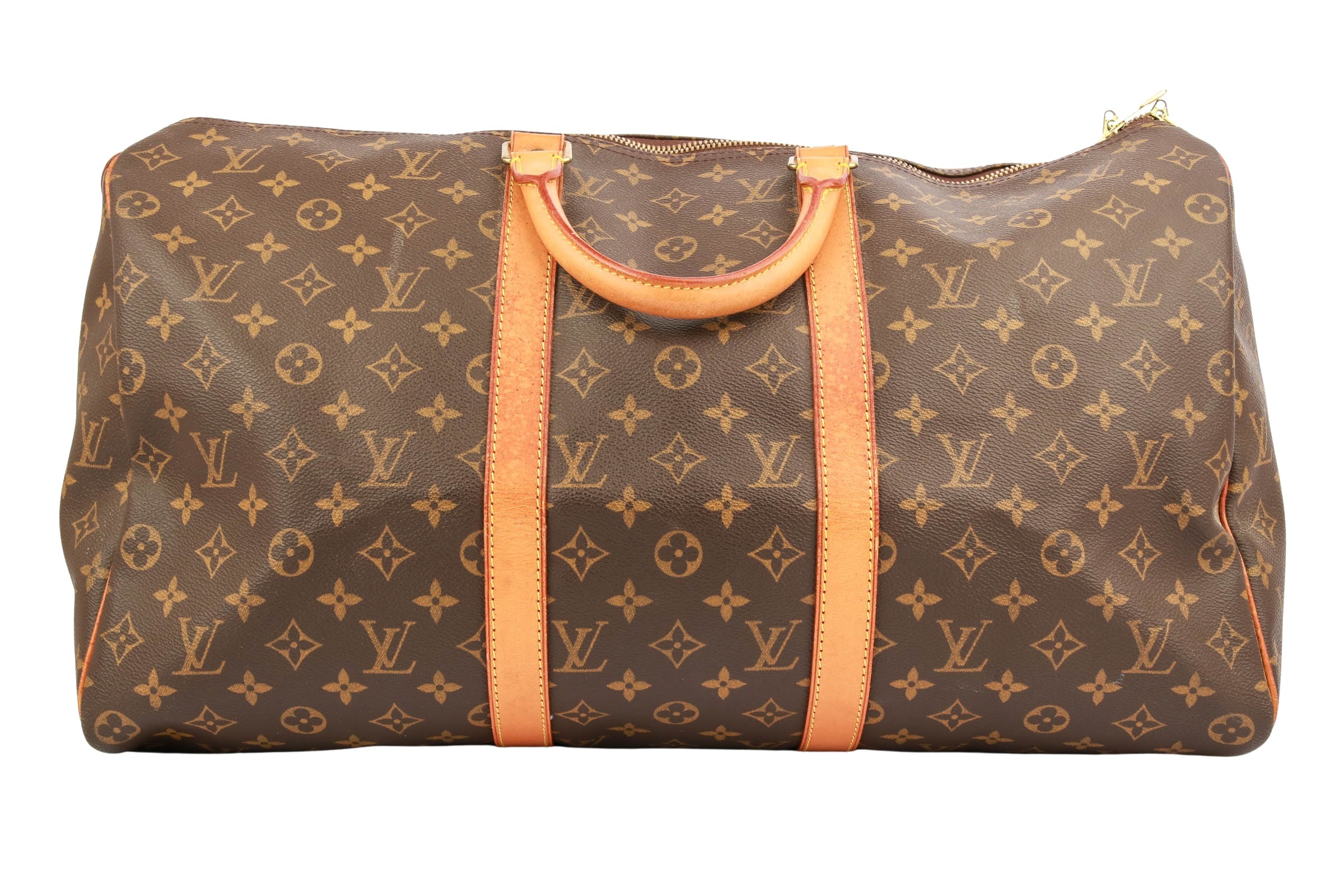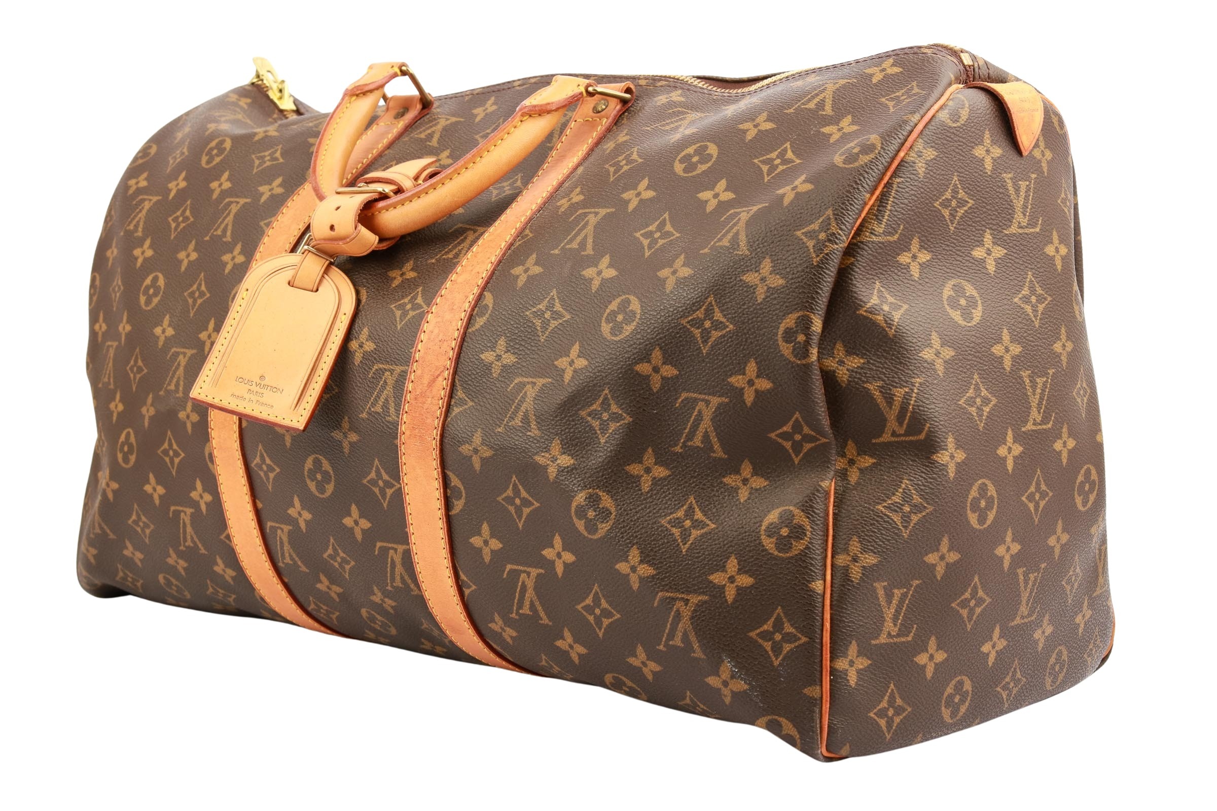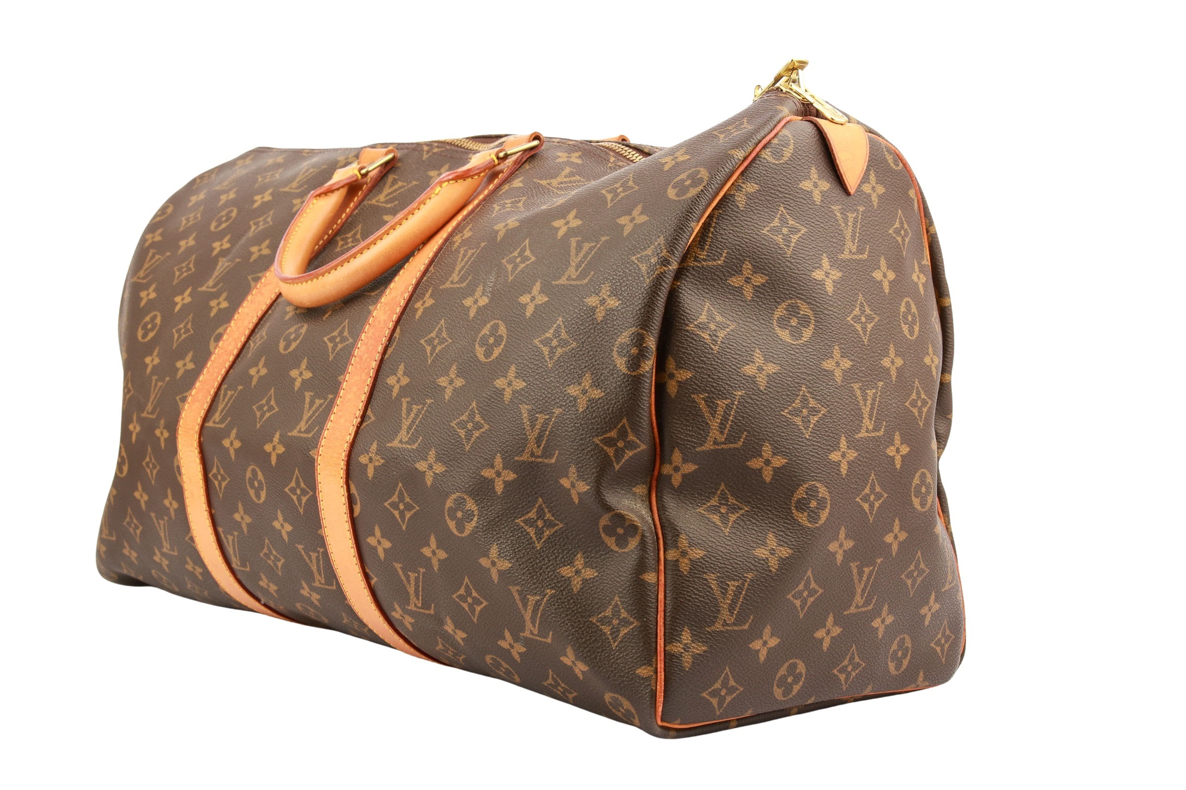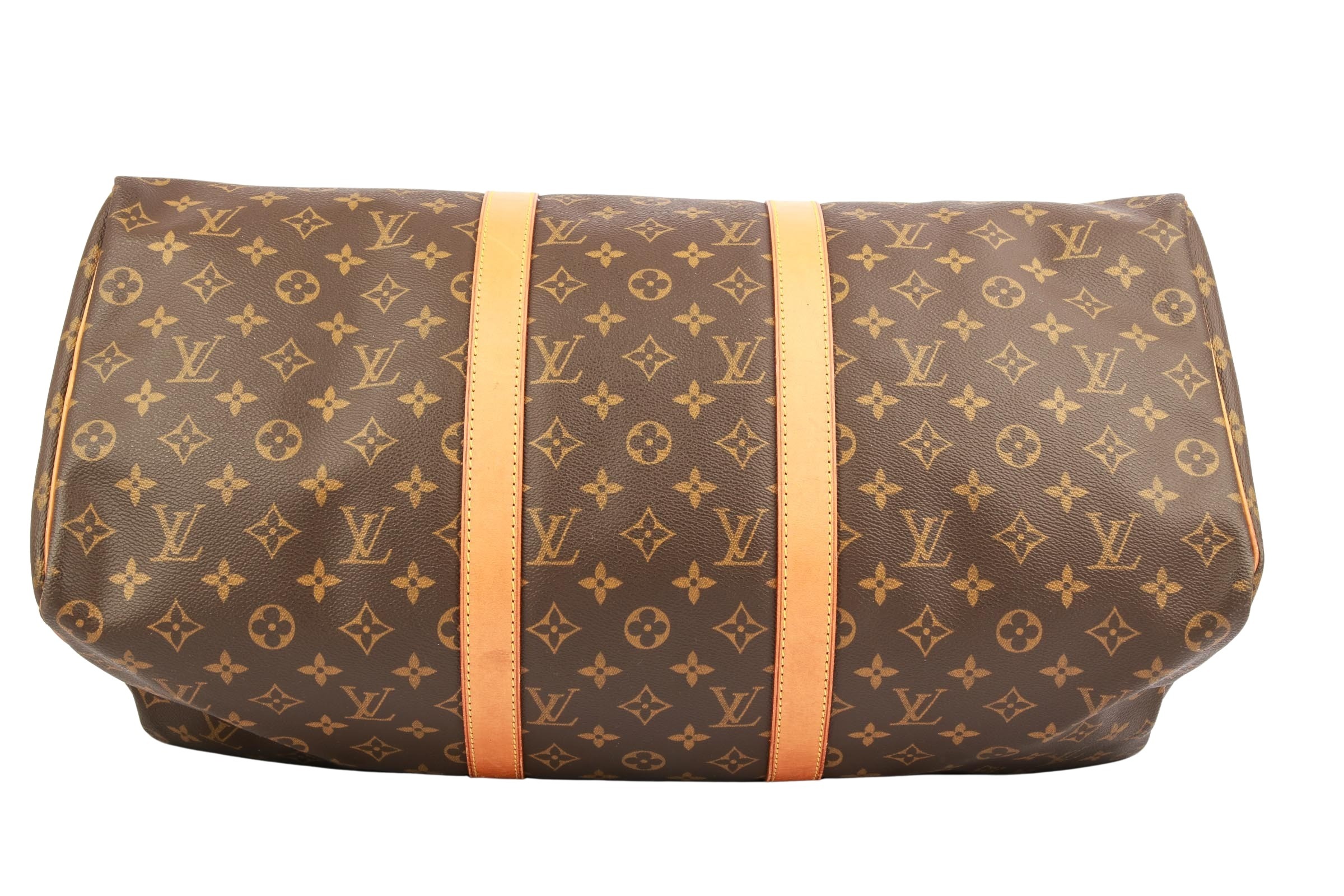 The Louis Vuitton Keepall 45 in Monogram canvas is a stylish and versatile companion for short trips. Its classic design with the distinctive monogram and natural leather details gives the bag an elegant yet sporty look. With a compact size of 45 x 27 x 20 cm, it fits standard carry-on dimensions while still offering plenty of room for the essentials.