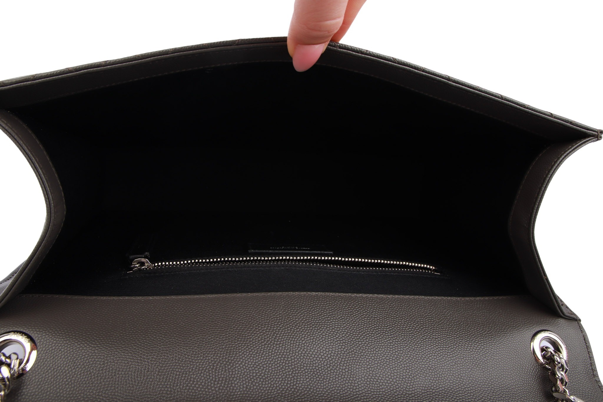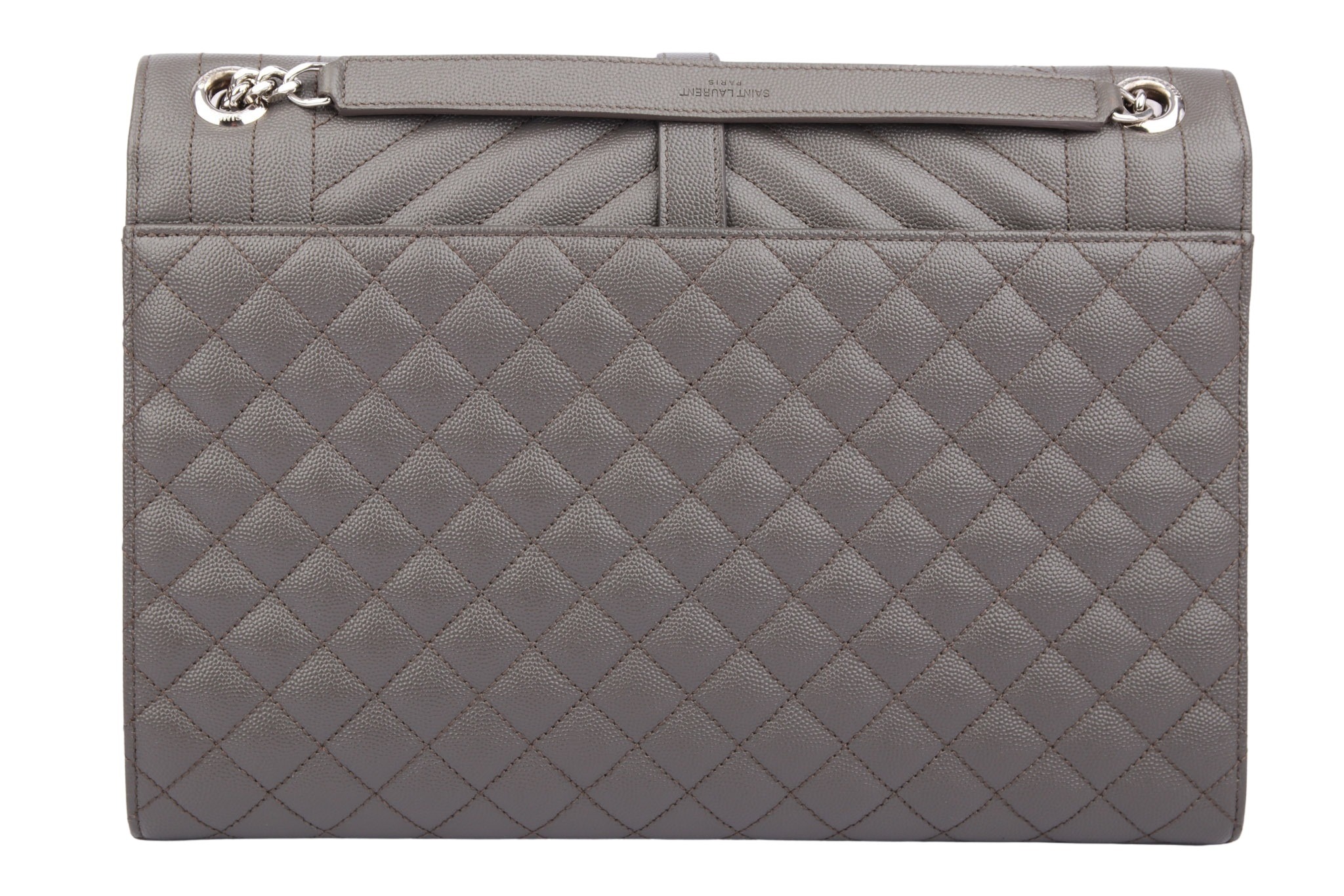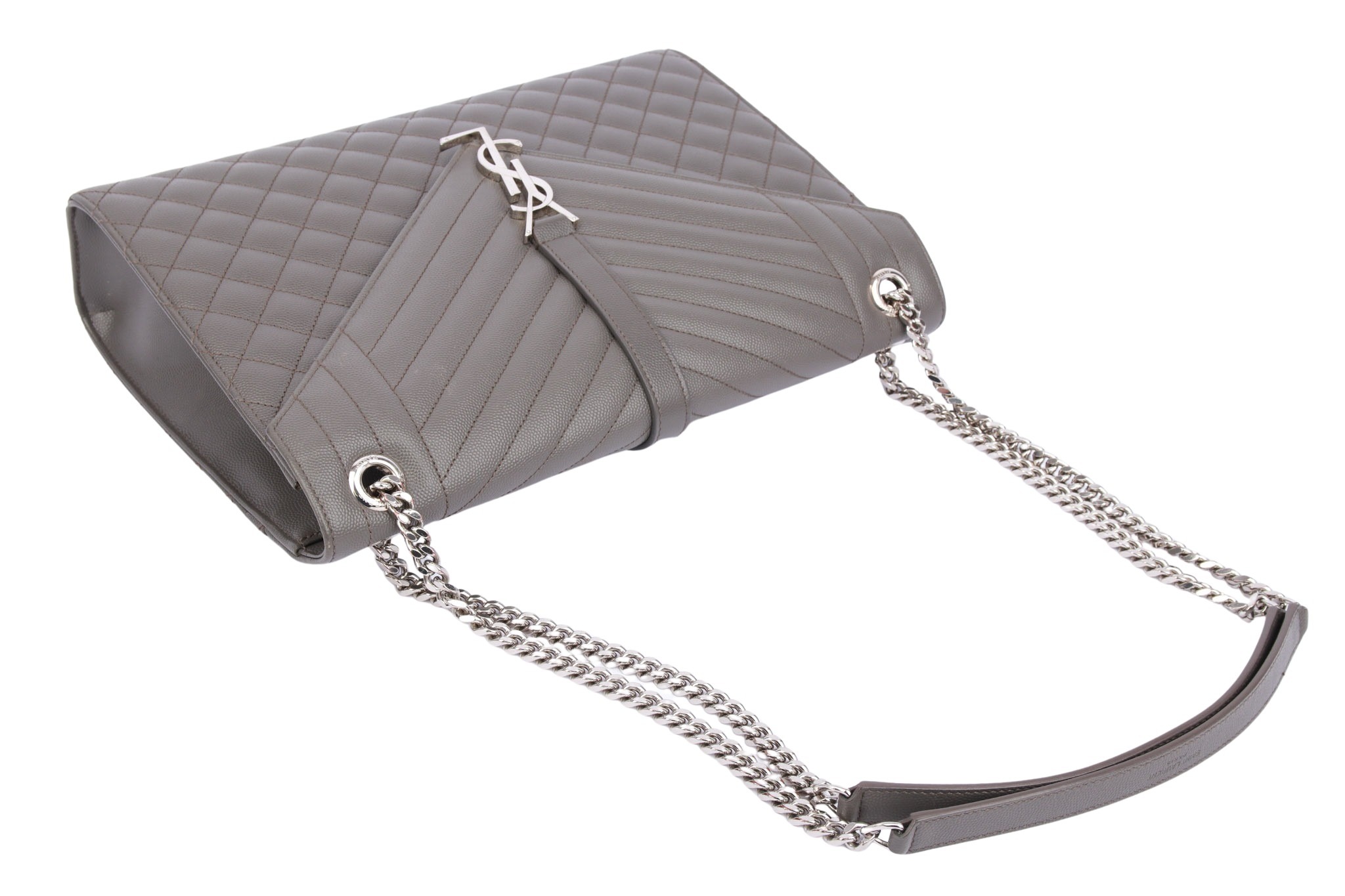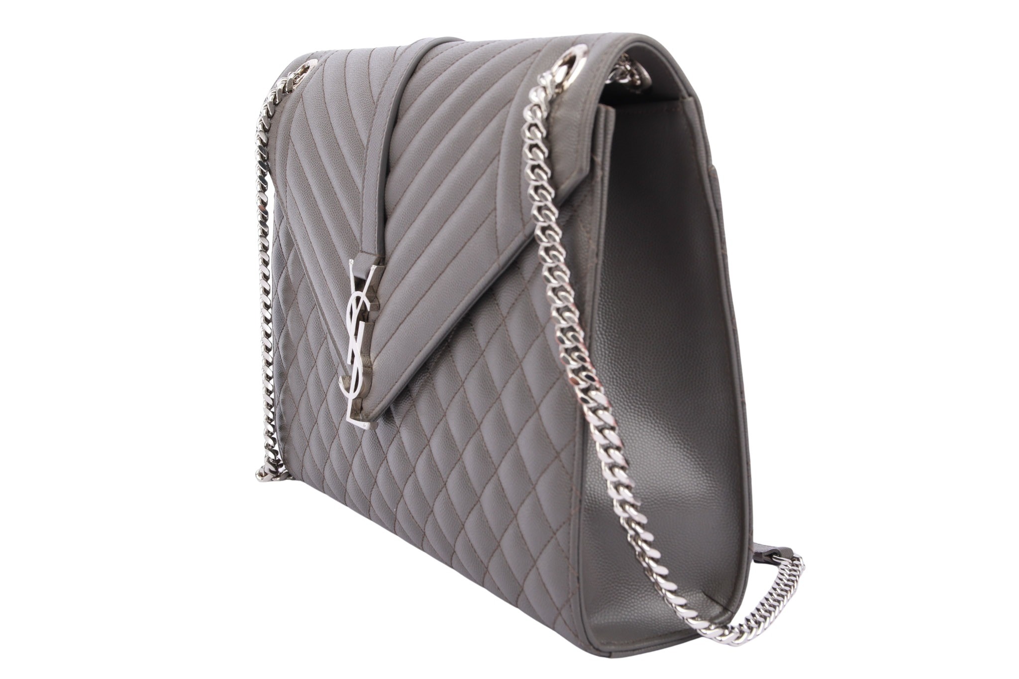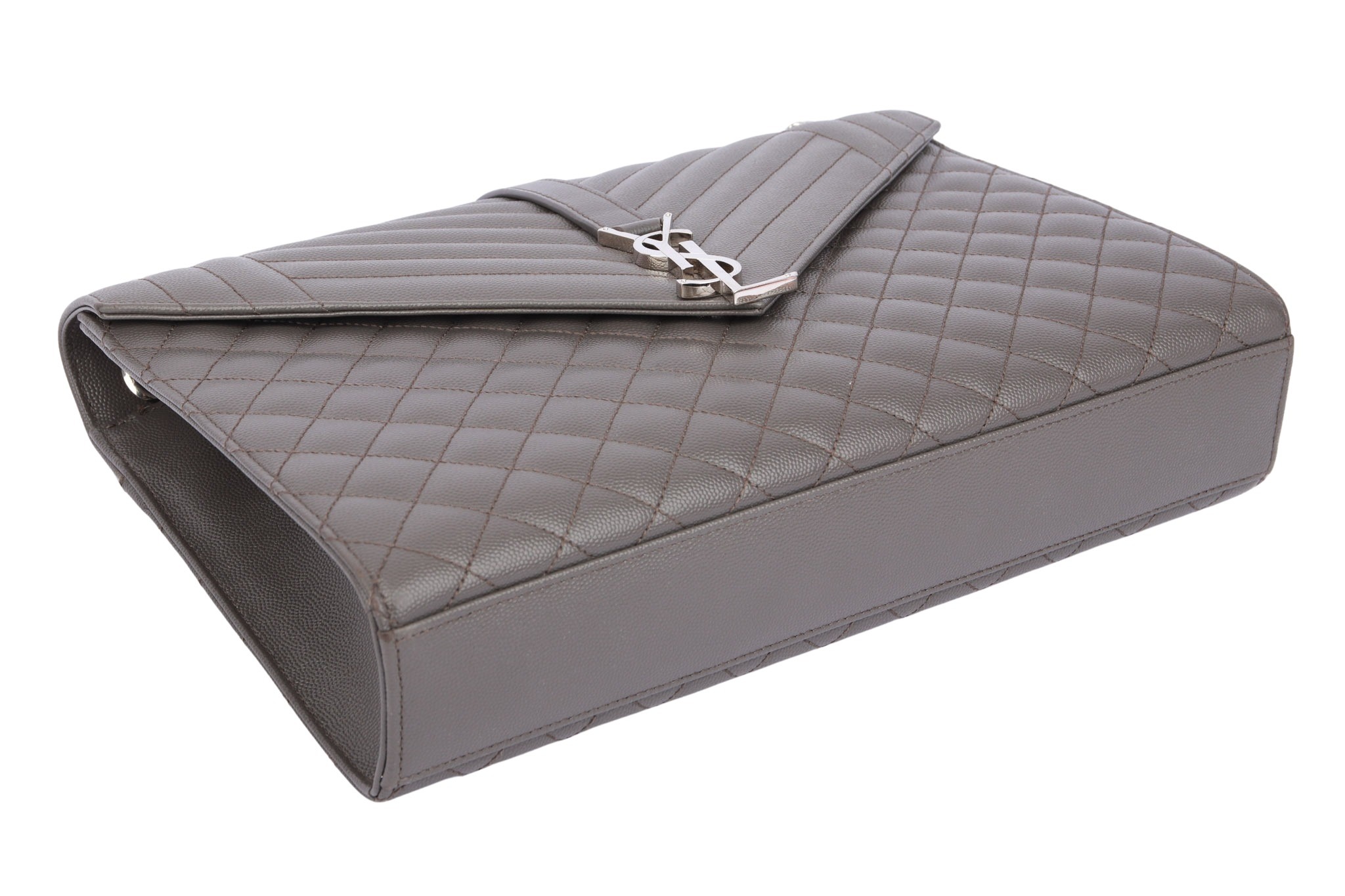 The Saint Laurent Envelope Large in elegant grey embodies timeless elegance and modern sophistication. Crafted from high-quality, textured leather with the iconic chevron and diamond quilting pattern, it combines classic craftsmanship with luxurious design.