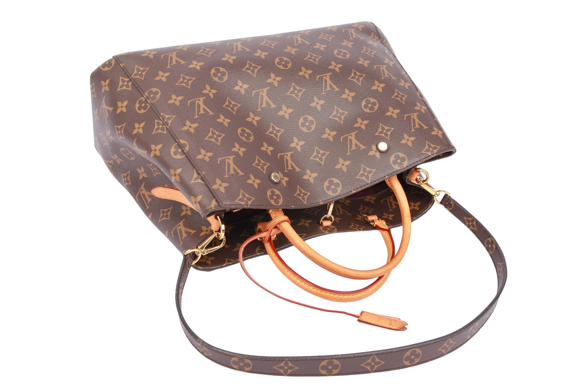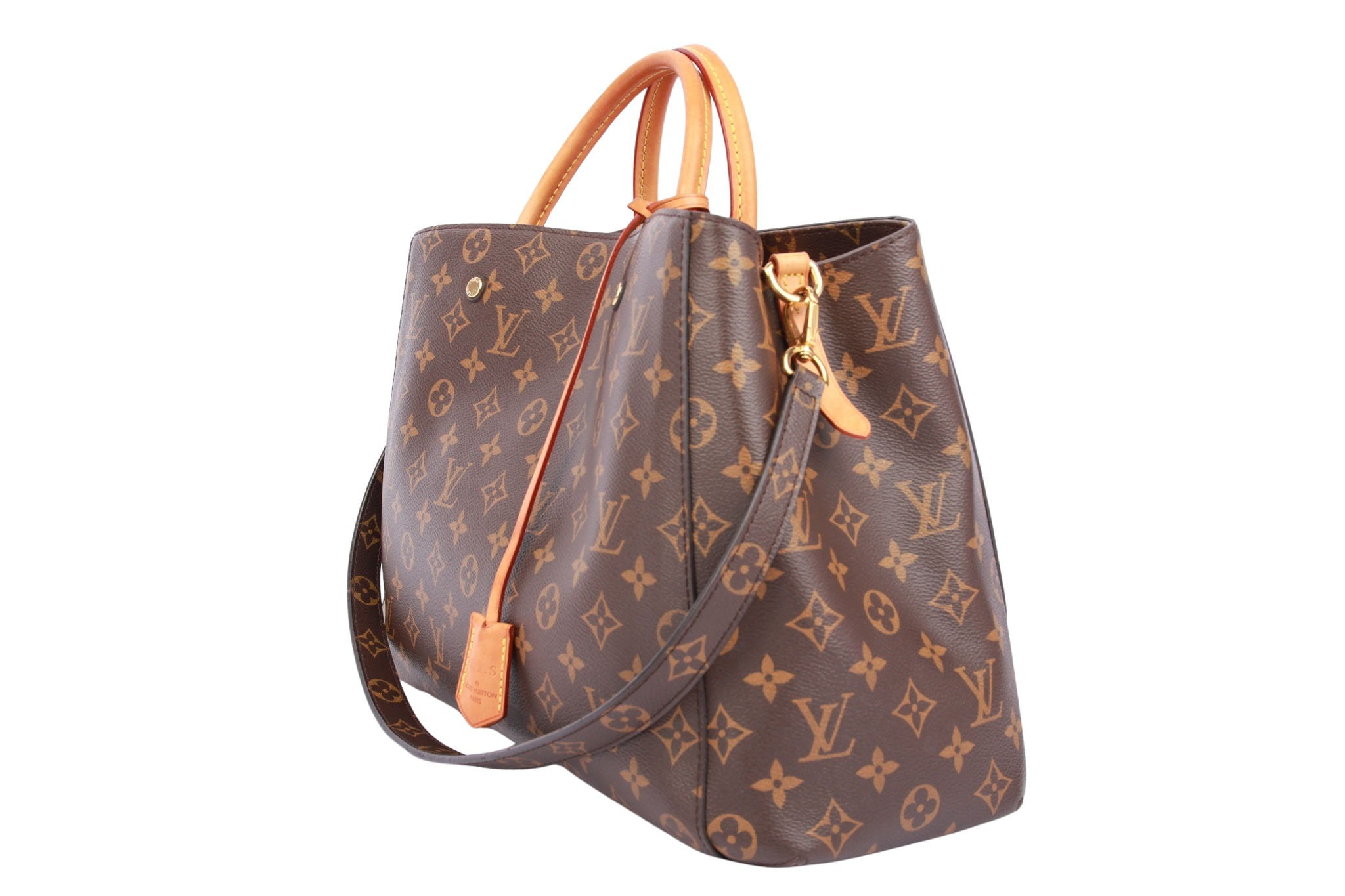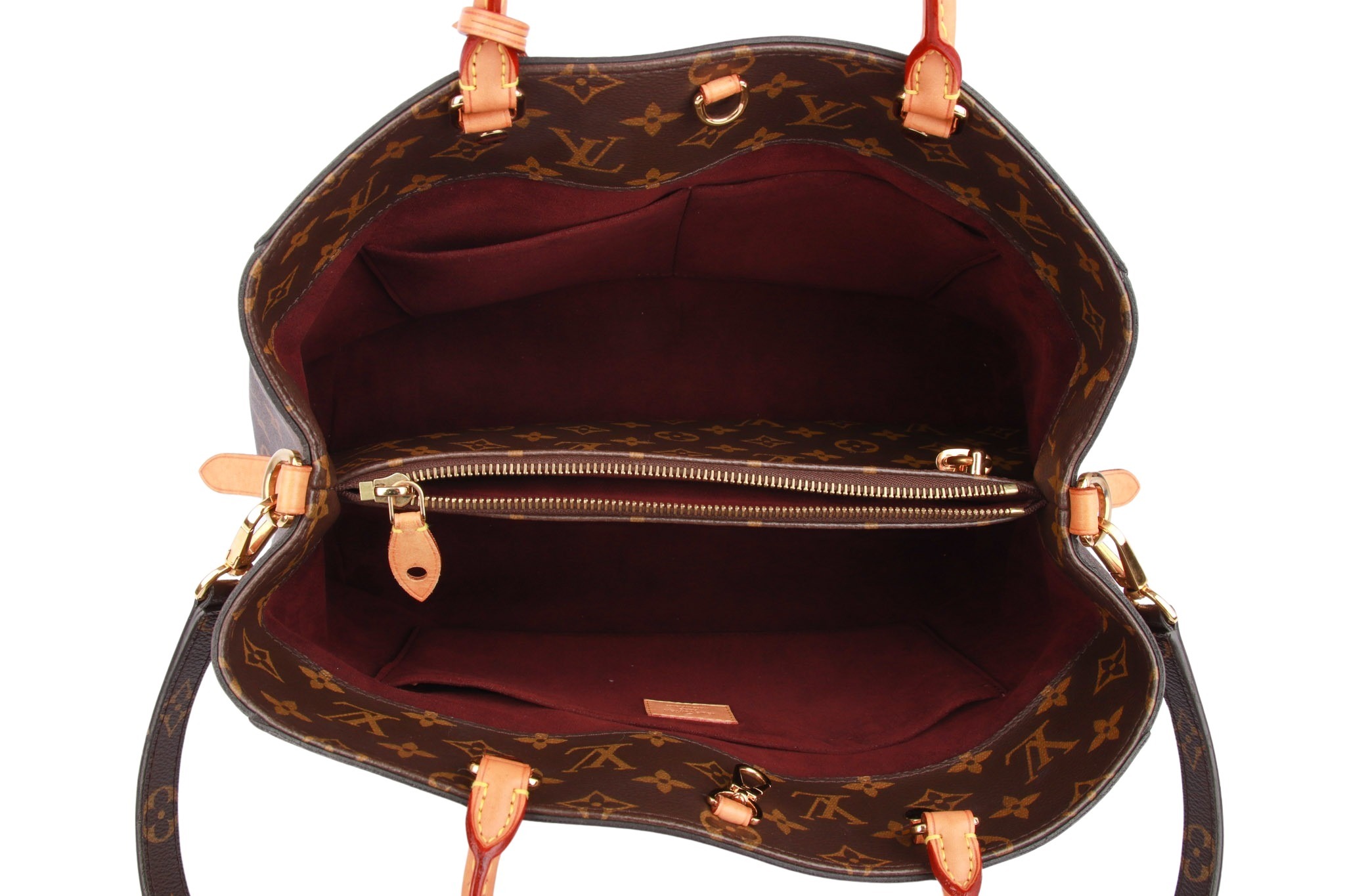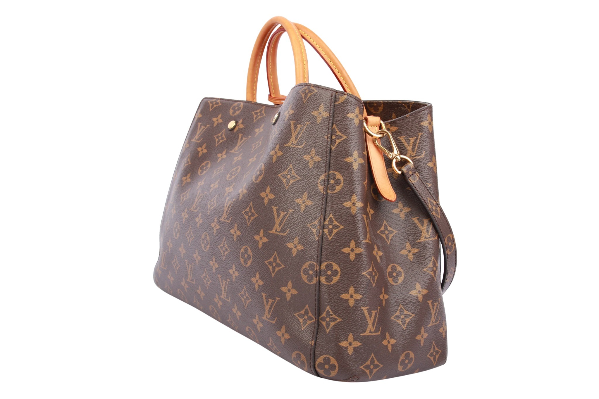 The Louis Vuitton Montaigne GM Monogram Canvas is a luxurious handbag that combines elegance and functionality. Made from the iconic Monogram Canvas, it impresses with its timeless design and the high level of craftsmanship that is typical of Louis Vuitton. The bag offers generous storage space and is ideal for everyday use as well as for special occasions. It has several compartments, including a central zipped compartment, and comes with two handles and a removable shoulder strap, which allows for versatile carrying options. The gold-colored fittings and the high-quality microfiber lining underline the exquisite workmanship and luxurious character of the bag.