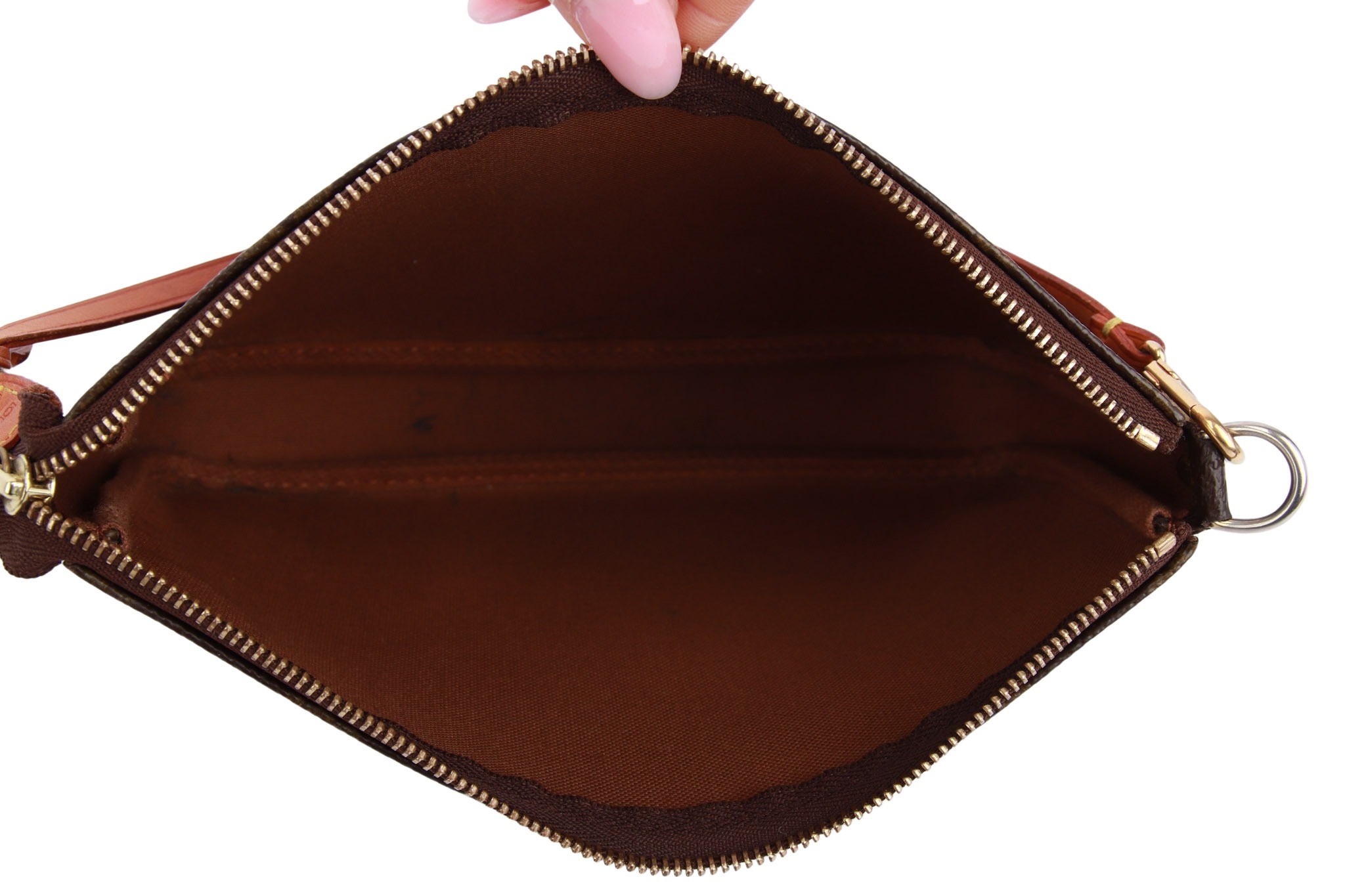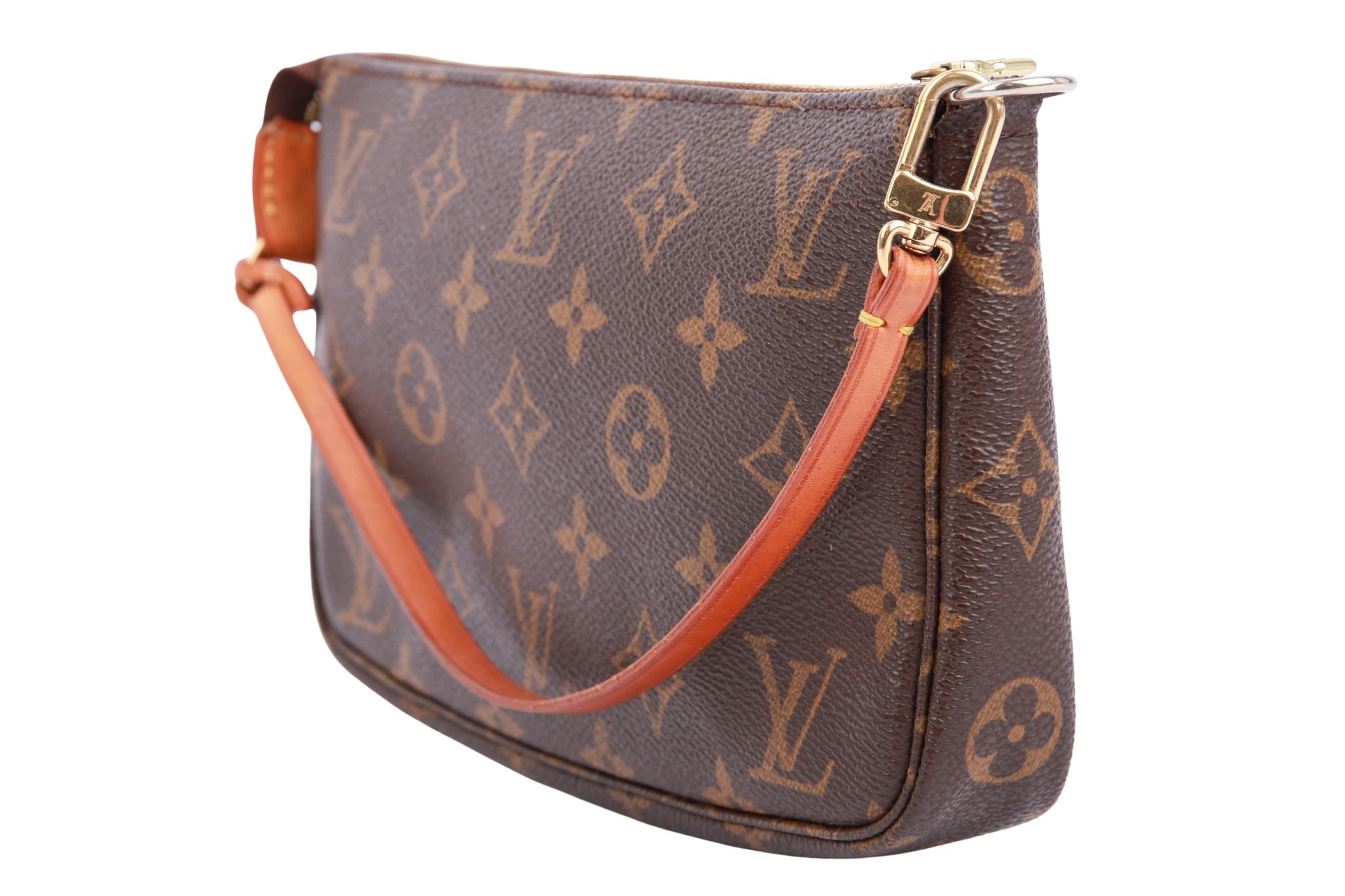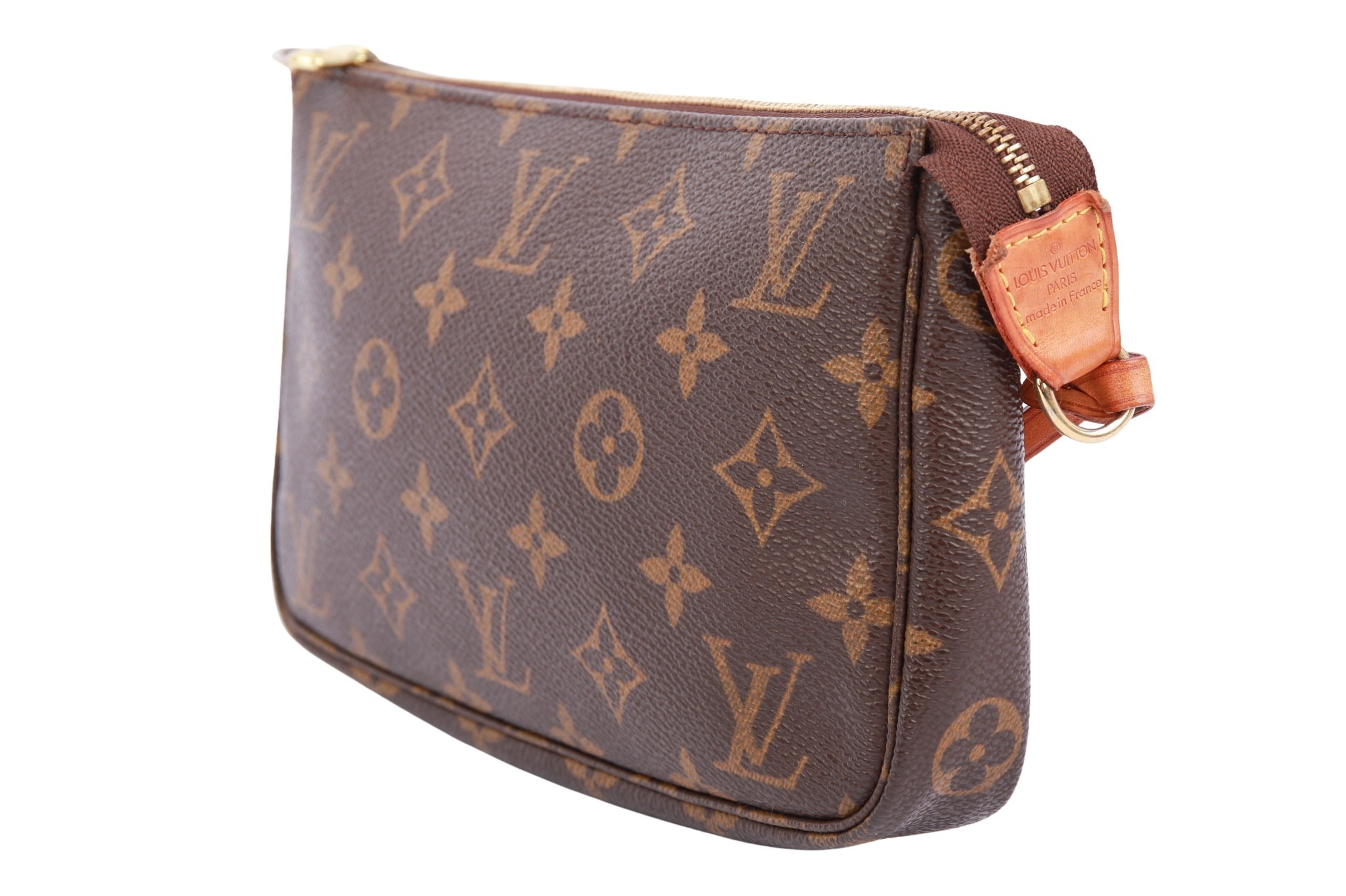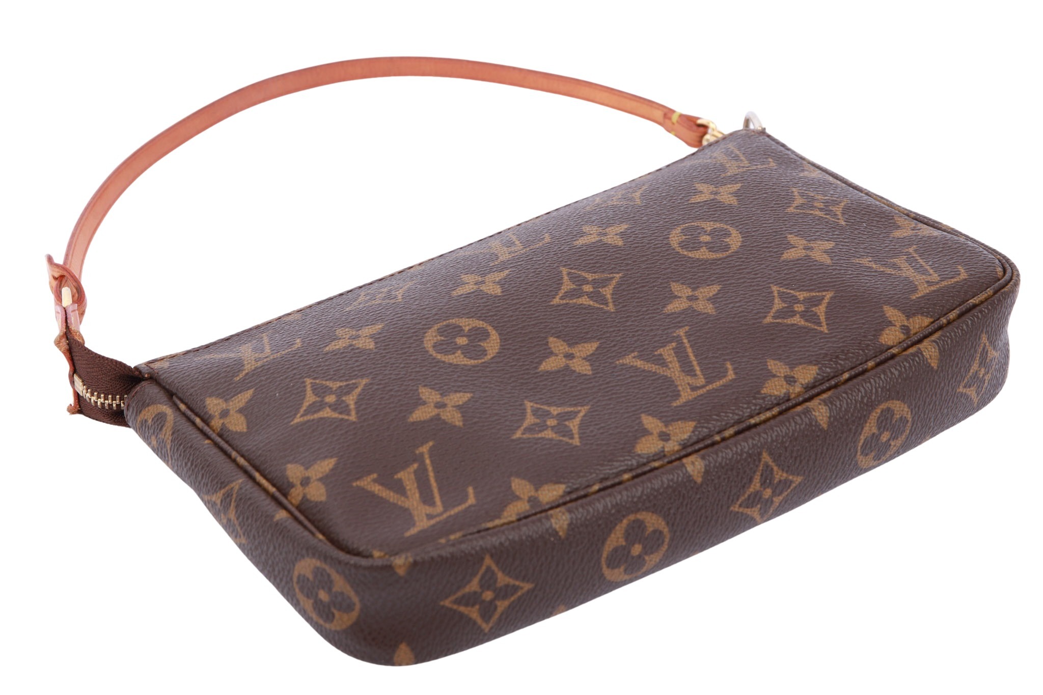 The Louis Vuitton Pochette Monogram Canvas is a compact and versatile bag, ideal for everyday use or a night out. Crafted from the iconic Monogram Canvas with natural leather details, it combines timeless style with practical functionality. Despite its handy size, it offers ample space for essentials such as a phone, keys, and cosmetics. The Pochette can be carried as a clutch, worn on the wrist, or attached to larger bags thanks to its detachable strap. A true must-have, it looks stunning both on its own and as a complement to other Louis Vuitton bags.