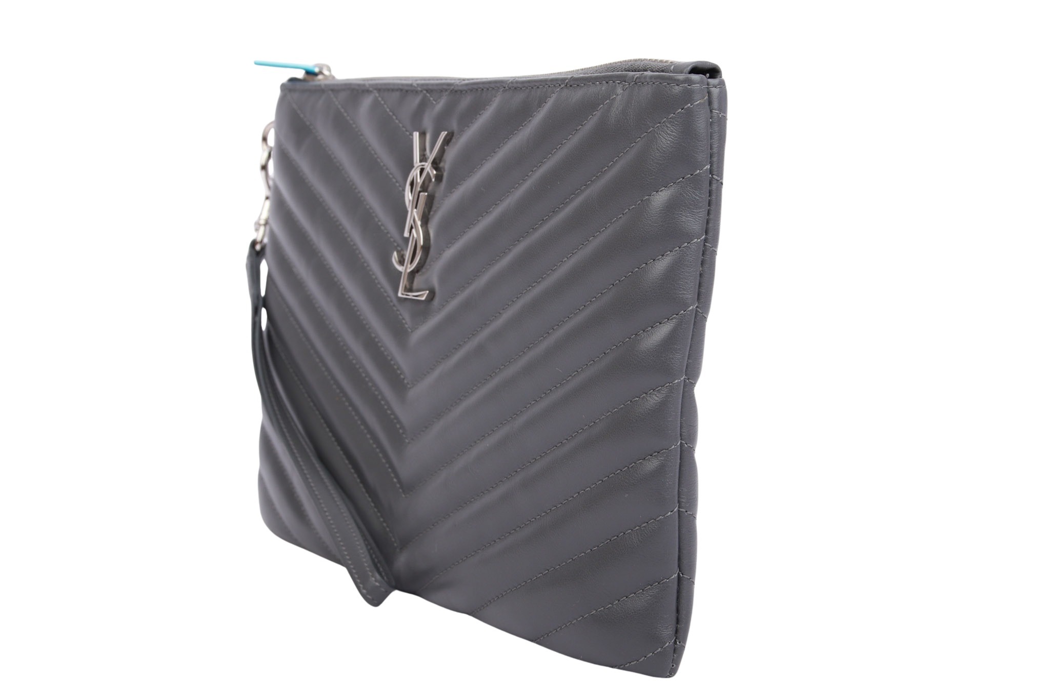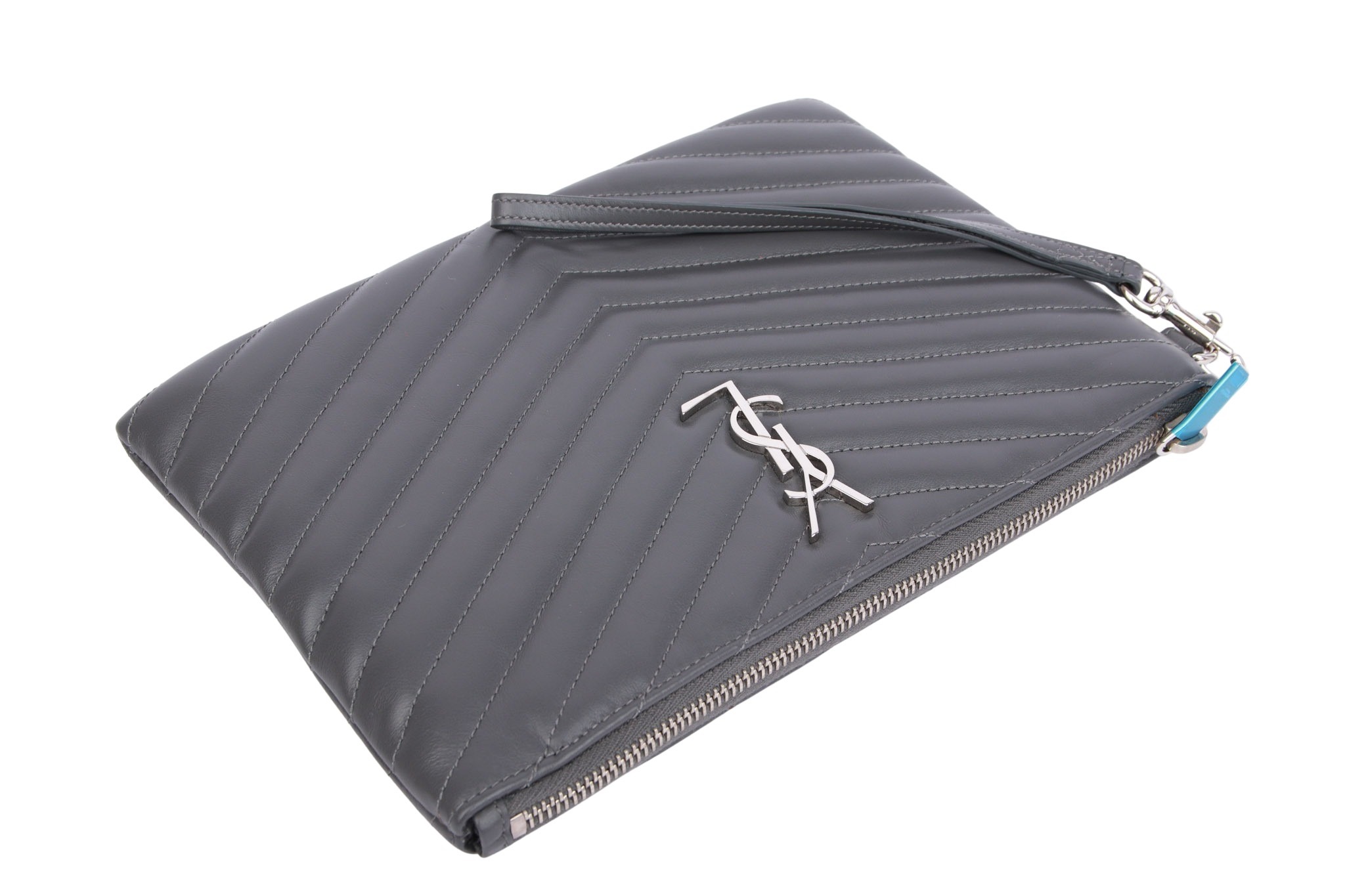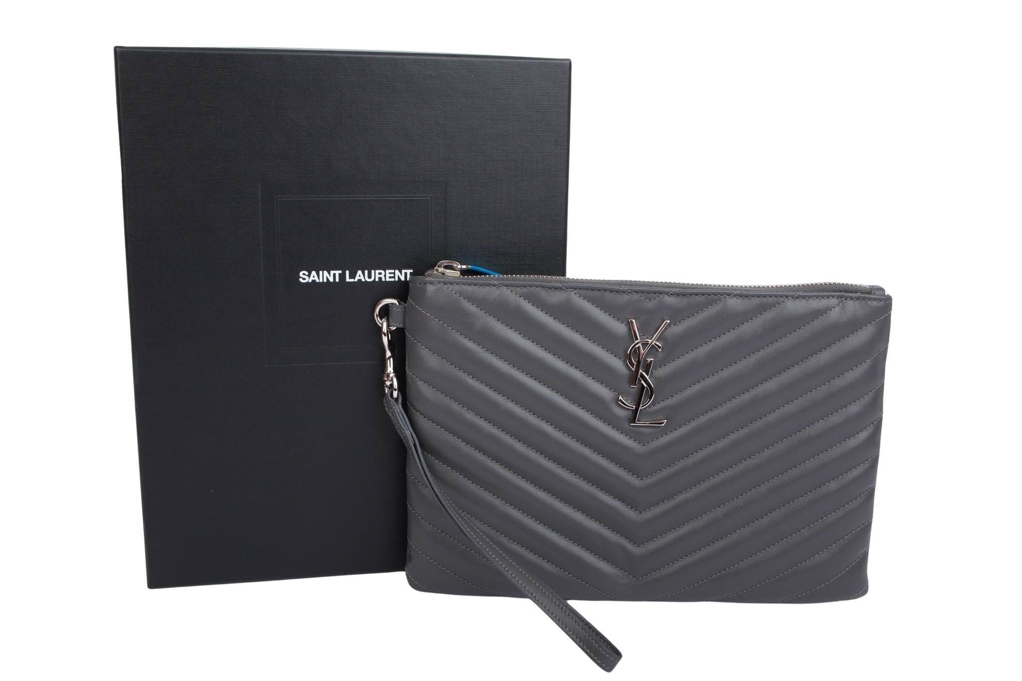 Saint Laurent Monogram Jolie Clutch Leder Grau