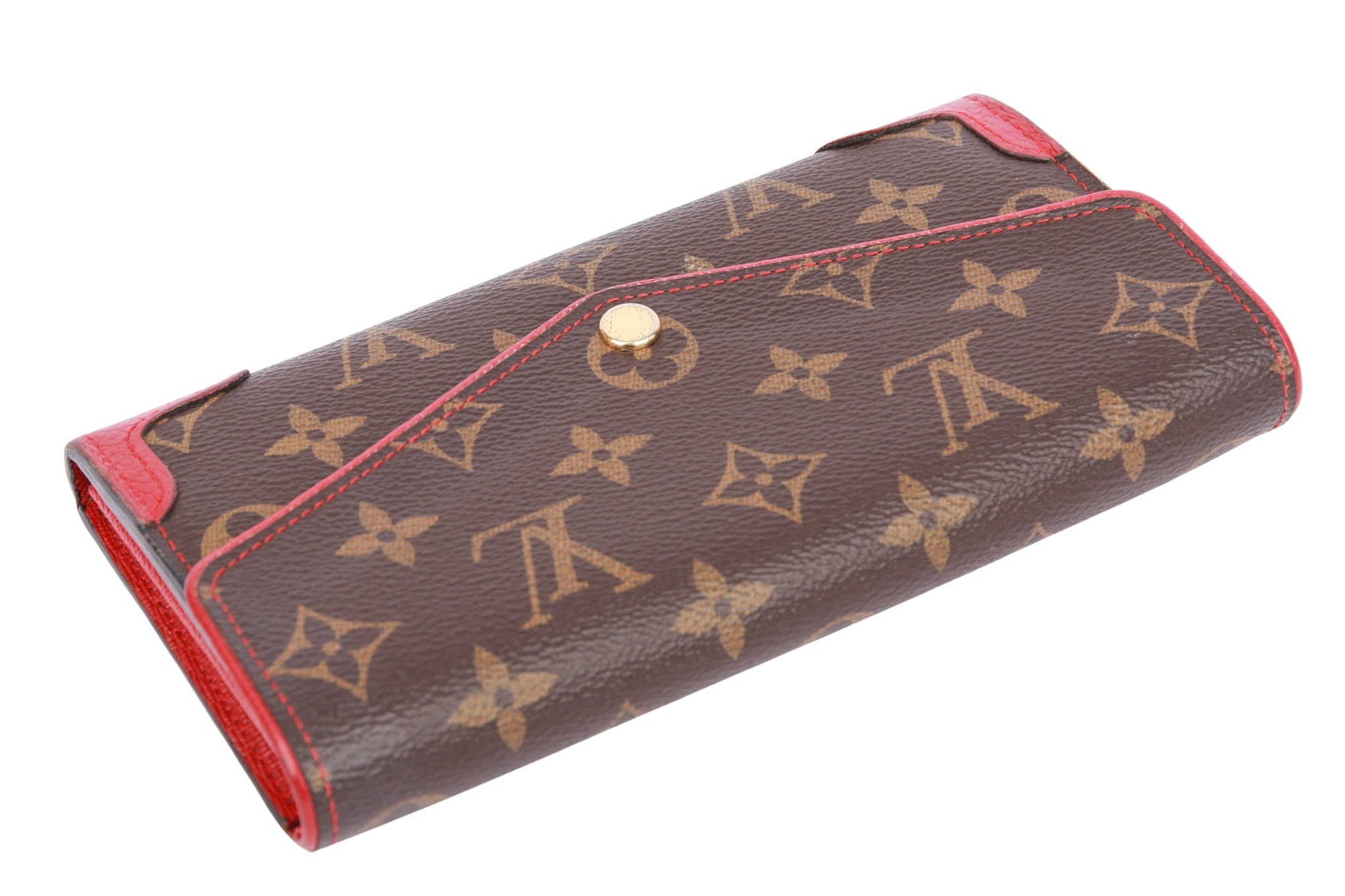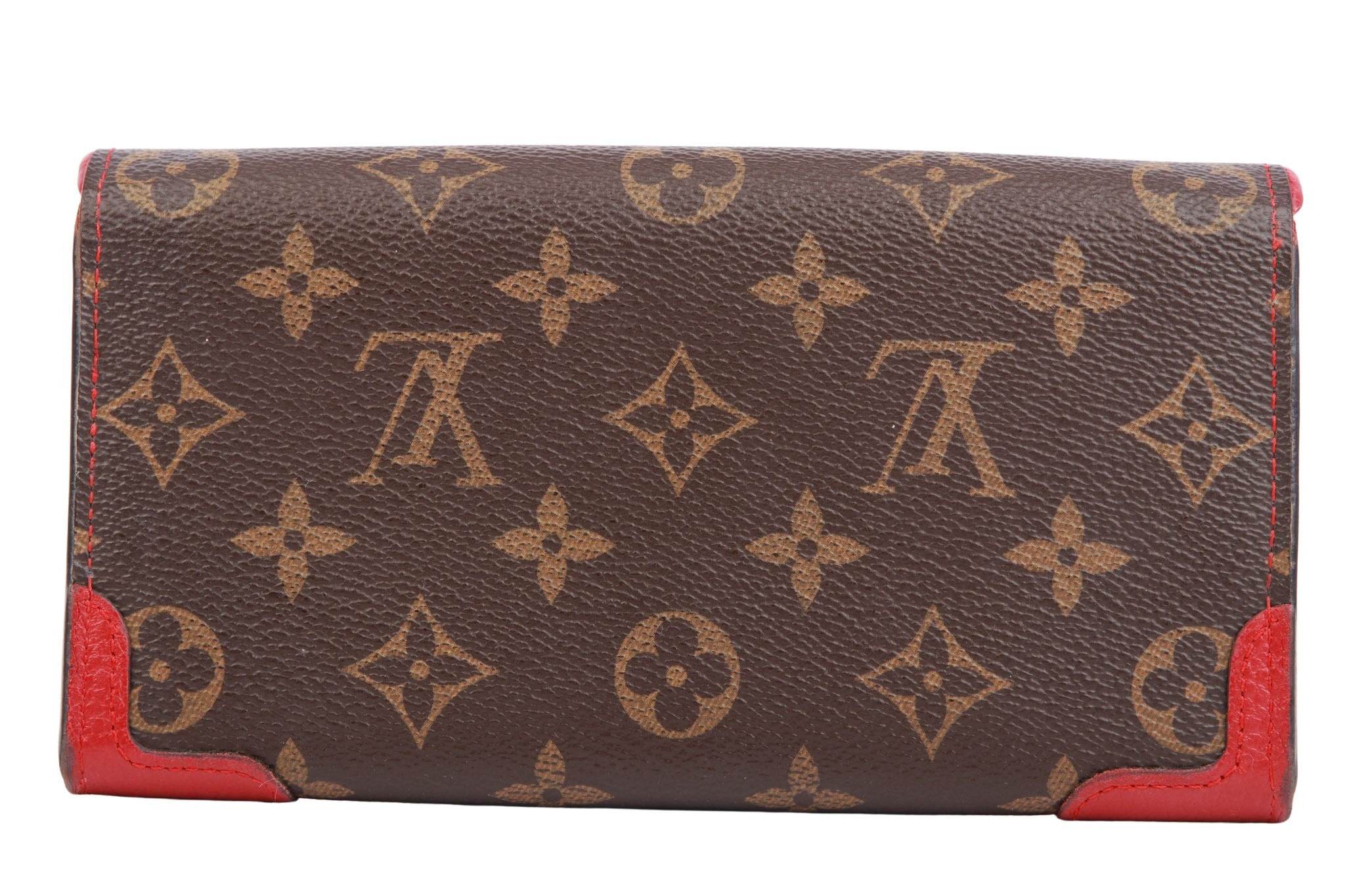 Louis Vuitton wallet crafted from classic Monogram Canvas, renowned for its durable, water-resistant material and iconic LV monogram. This wallet combines timeless design with functionality, offering multiple card slots, space for banknotes, and a coin pocket. A stylish and practical accessory that elegantly blends luxury with everyday usability.